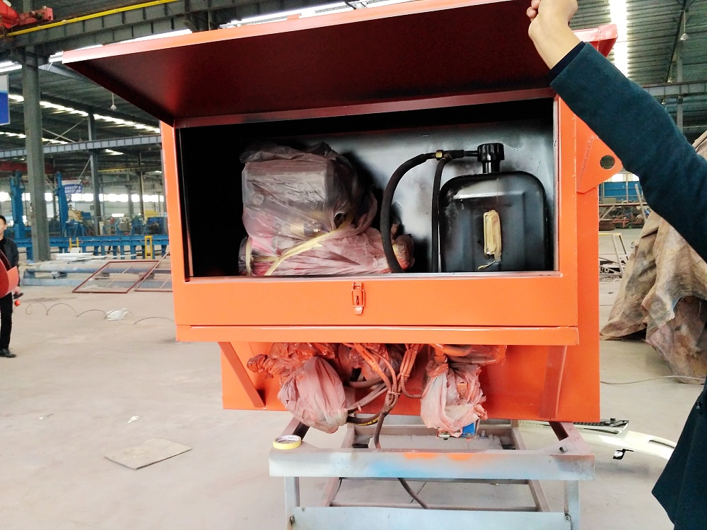 电启动发动机工作,通过液压泵带动马达旋转,把料斗中的融雪剂输送到撒料盘,由马达带动高速旋转的撒料盘把融雪剂均匀撒出。撒布机的物料分配抛撒机构由,固定桶、调节桶、溜槽和甩盘。融雪剂靠自重落入固定桶内,经调节桶、溜槽进入甩盘,靠甩盘高速旋转产生的离心力抛撒出去。根据承载汽车底盘高低不同,调节固定桶和调节桶的相对位置,以达到调节甩盘高低,满足不同车型使用;具有的翻转功能,可在设备不用时将甩盘机构翻**上方,方便运输、存放。